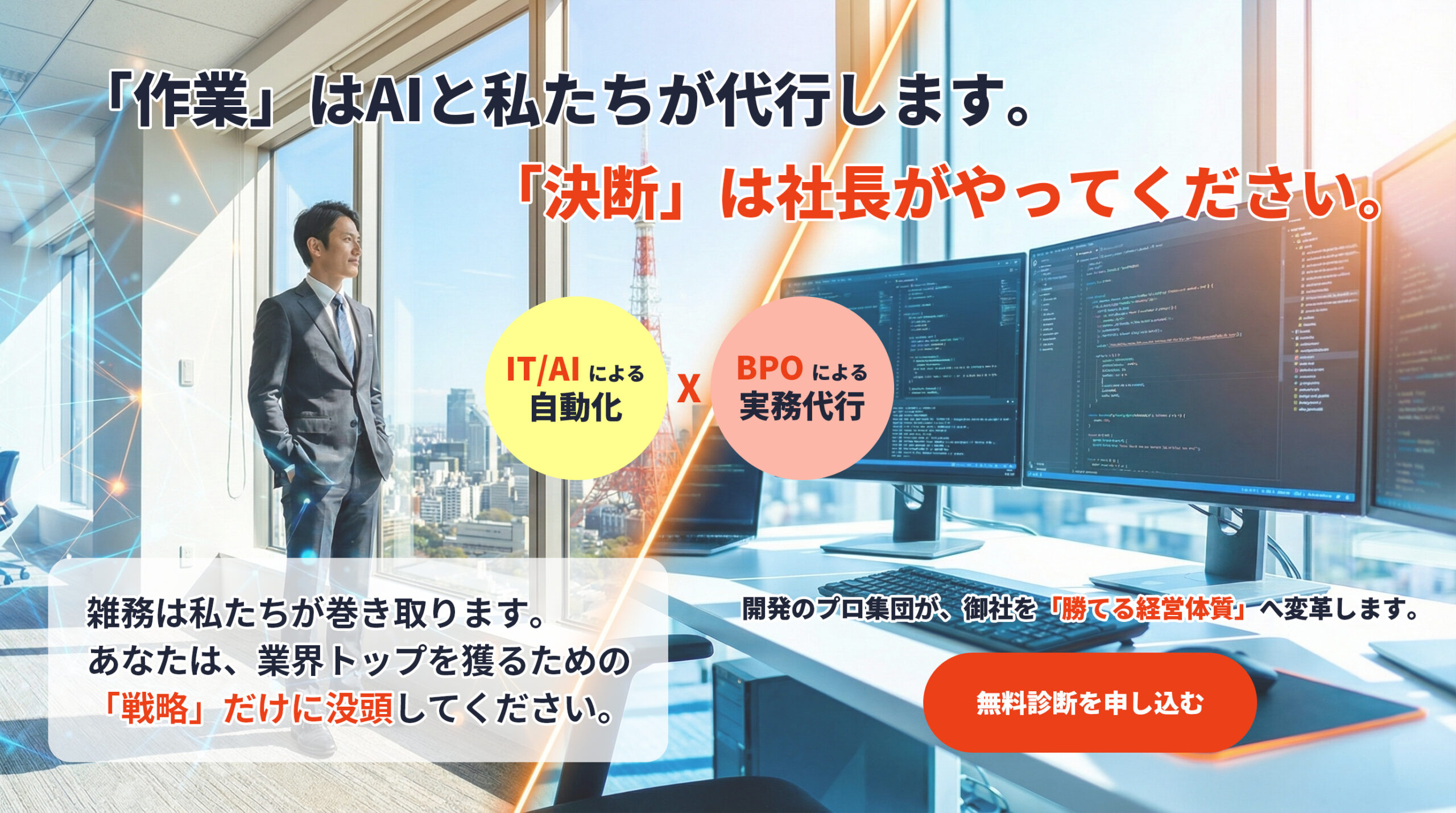 手足となる作業がなくなった御社に残るのは「思考する時間」です。空いたリソースを全て「攻め」に注ぎ込んでください。
